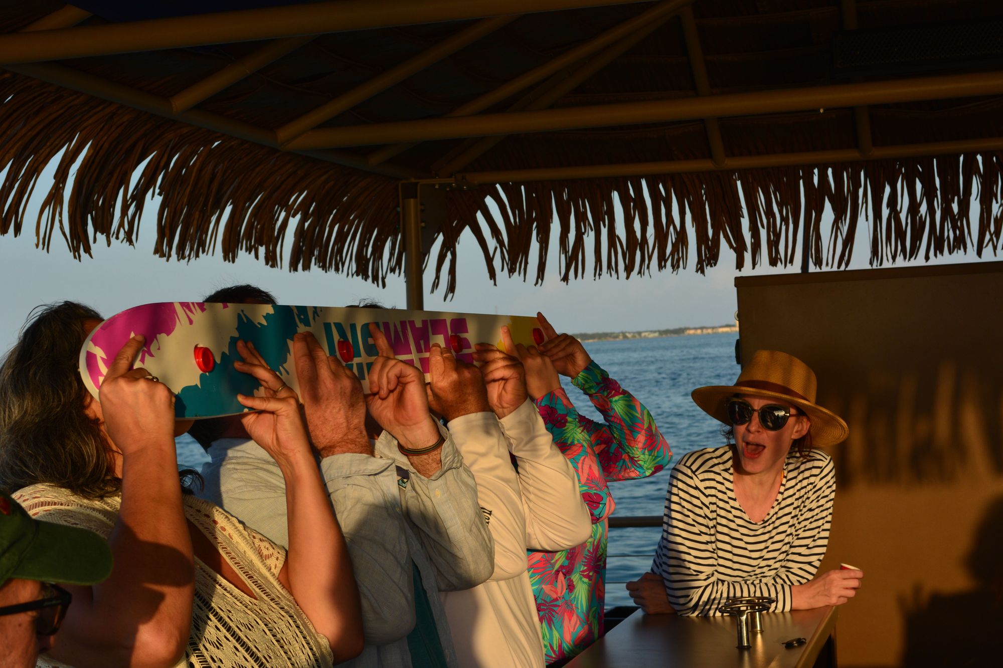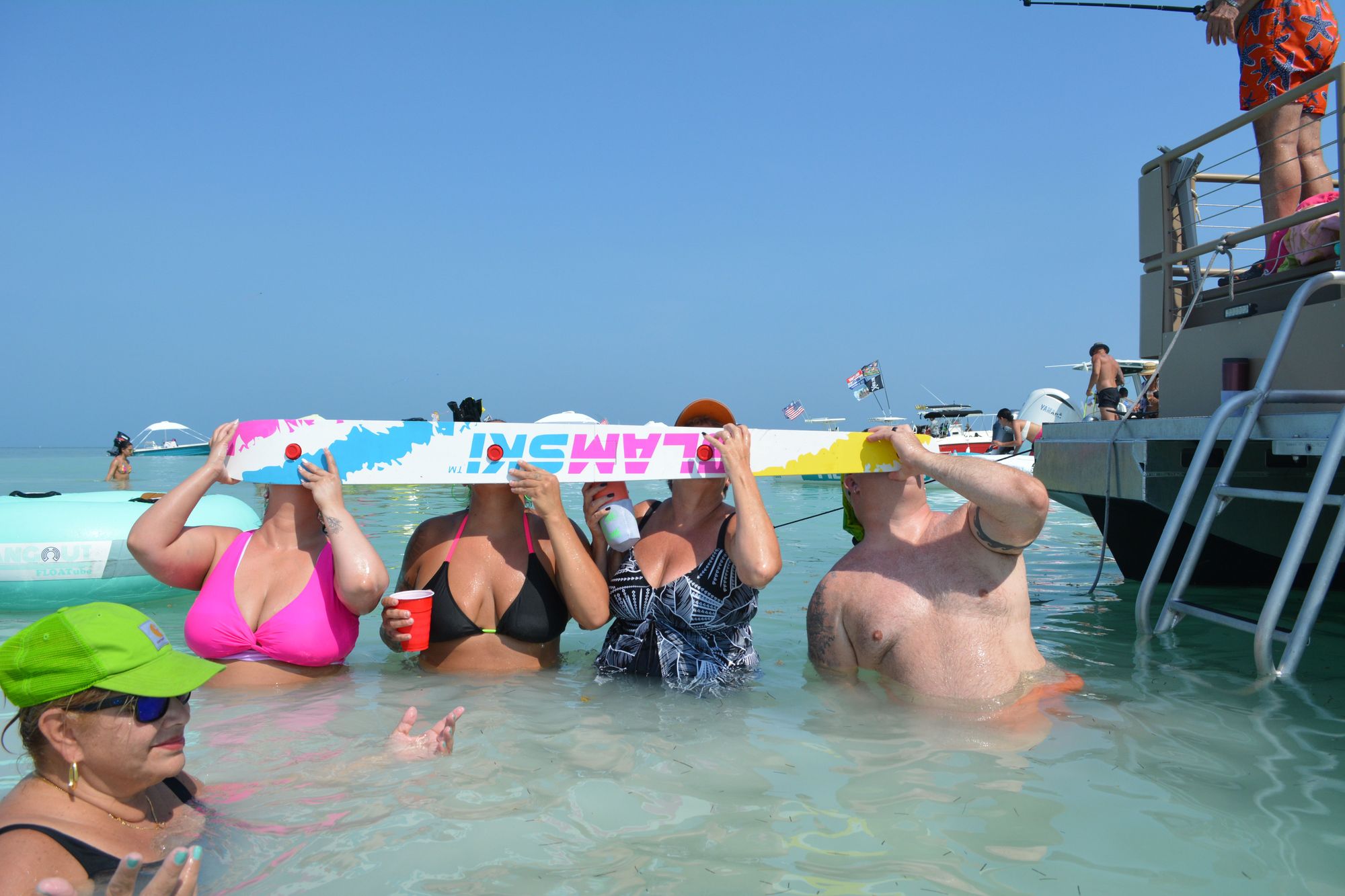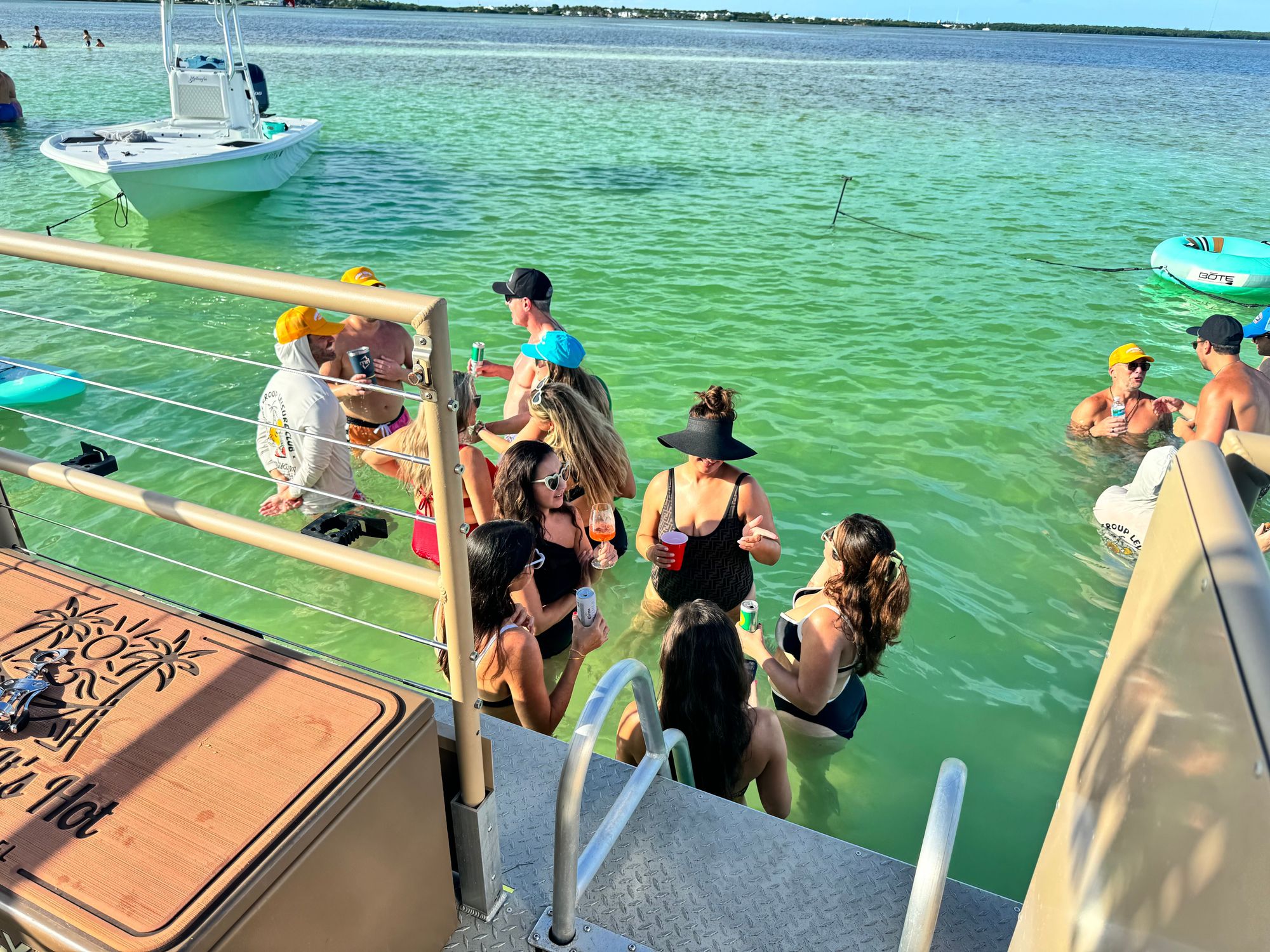 Our brand new tiki bar boat, “Tropic Like It’s Hot”, was custom built to be the best sandbar party and sunset cruise boat in the Florida Keys. Designed for up to 18 passengers (though we think groups of 8 – 14 will be the most comfortable), Tropic Like It’s Hot offers everything you need for the perfect day on the water in Islamorada. Perfect for large family or friend groups, wedding parties, bachelorette / bachelor parties, and corporate outings.